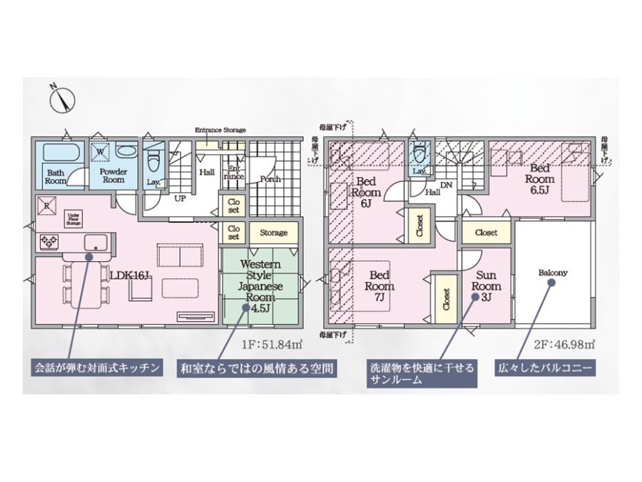 ・バルコニーは屋根付きで突然の雨も心配無用!